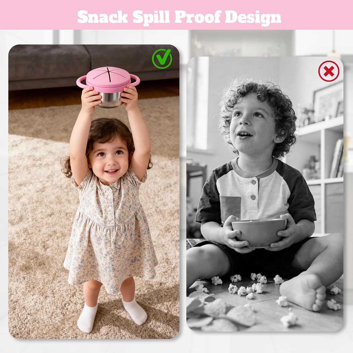 8 Pack Stainless Steel Snack Containers for Kids with Spill-Proof Silicone Lids & Handles - 3-in-1 Snack Cups for Toddlers Spill Proof | Dishwasher Safe, BPA-Free On-the-Go Kids Snack Containers Box
